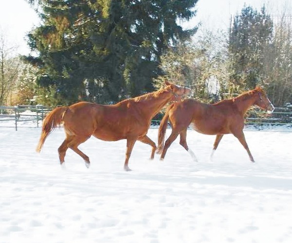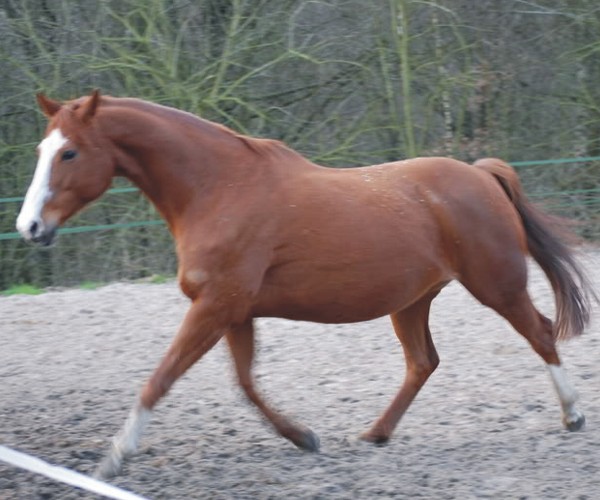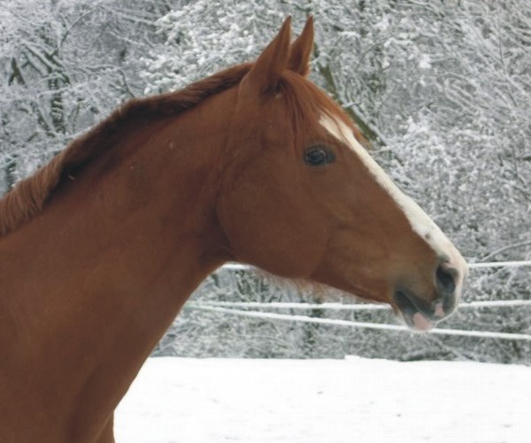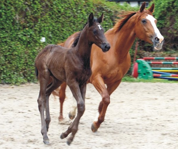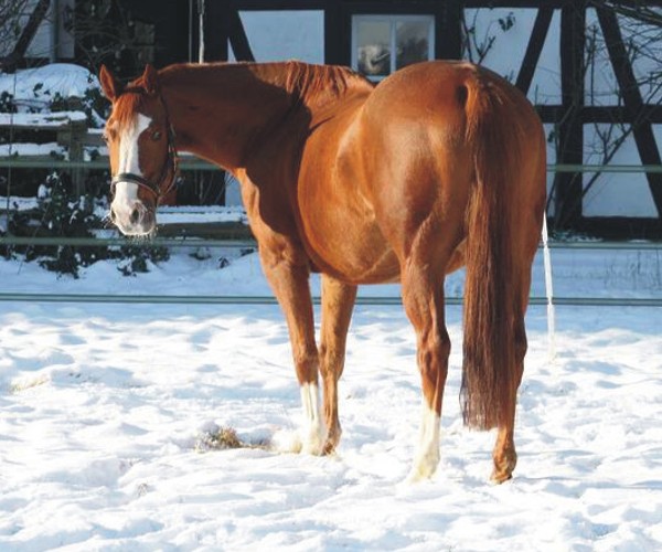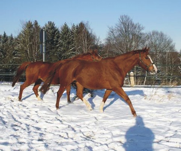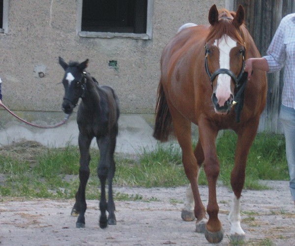 Ein wenig müssen wir ausholen: Als wir 2006 den Hof übernahmen, auf dem wir leben, war von Anfang an klar, dass wir auf eine Vertretung für Haus und Hof angewiesen sind, falls man mal ein paar Tag weg wollte oder, oder, oder. Das Pferd einer Freundin zog mit ein, eine Holsteiner Stute. Diese wurde 2007 belegt und erwartete für 2008 ihr Fohlen. Ich empfahl meiner Freundin, die Stute zu einem Züchter in eine Herde zu geben, damit entsprechende Spielkameraden da sind. Sie wollte jedoch gerne, dass ihre Dame bei uns bleibt, sie fühle sich wohl, etc pp. Wir dachten darüber nach, eine Beistell-Stute mit Fohlen zu organisieren. Letztendlich setzte sich dann aber die Idee einer eigenen Trakehner-Stute durch. Als dann 2007 der Pferdebestand des Gestüts Sommerlade veräußert wurde, machten wir uns auf den Weg zur Besichtigung ins Oberbergische.