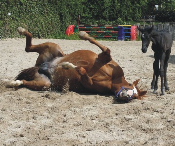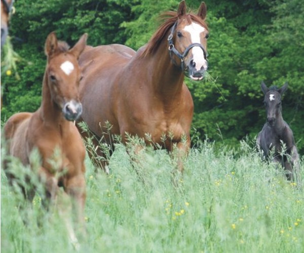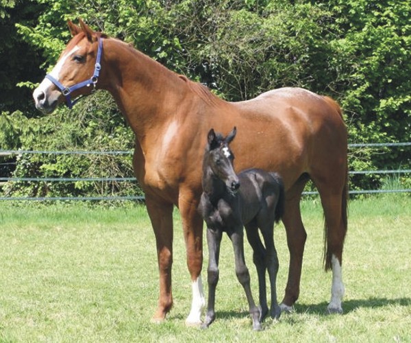 Der Bestand von Sommerlade wurde als einer der wertvollsten der Gesamtzucht bezeichnet, hatte für uns nur einen Nachteil: Es handelte sich fast ausschließlich um reine Dressurabstammungen, also nicht ganz das, was wir suchten. Schon beim ersten Besuch fiel uns allerdings Belle Surprise II auf, im Vergleich zu vielen anderen Stuten dort wirkte sie besonders rahmig und groß. Sie führte ein wunderschönes Fohlen von Maizauber.
